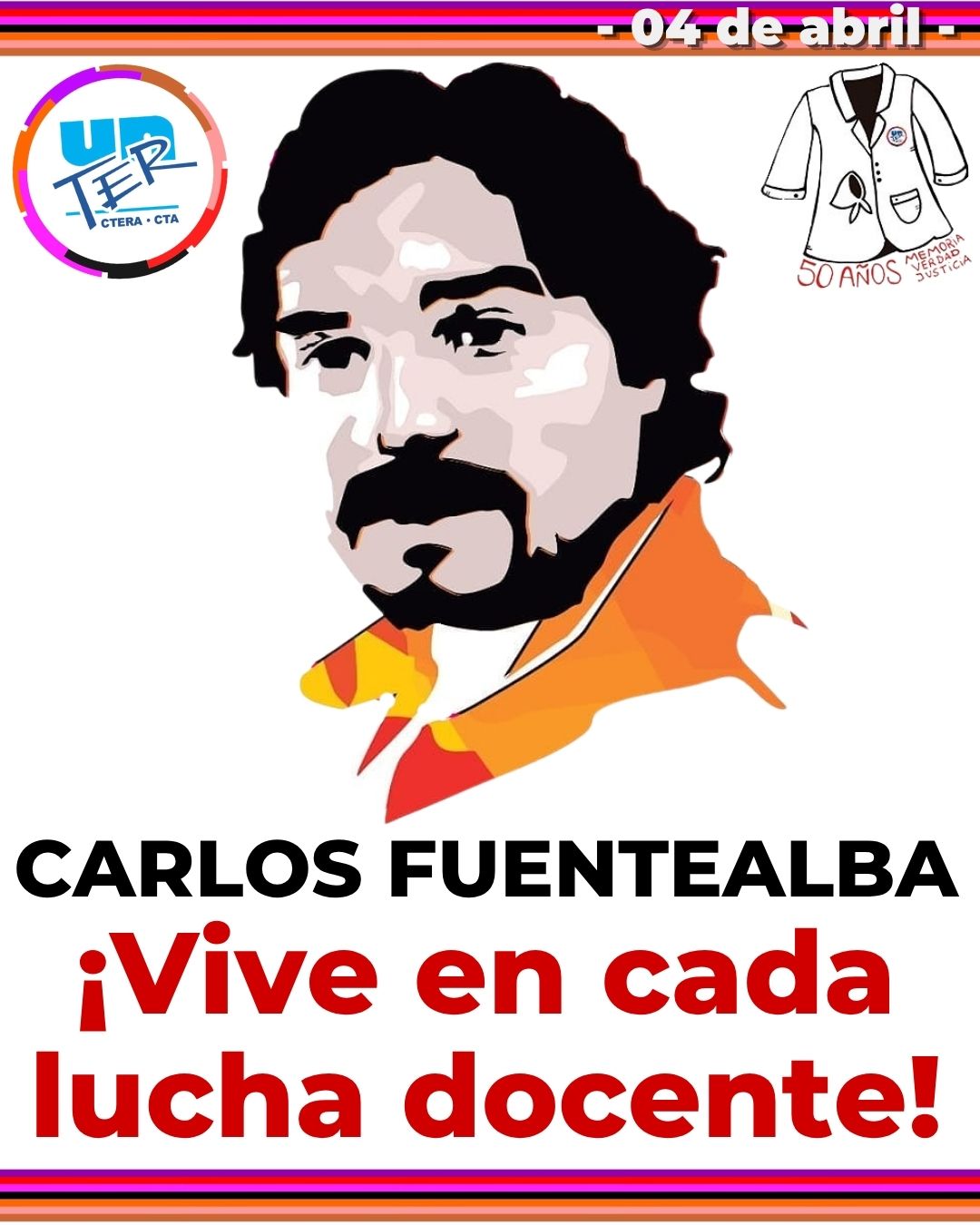 A casi dos décadas del 4 de abril de 2007, desde UnTER mantenemos intacta la memoria de nuestro compañero CARLOS FUENTEALBA ¡PRESENTE! No es un