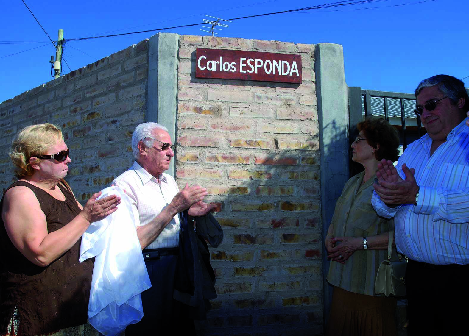 23/03/09. Acto cambio de nombres de las calles del Barrio UnTER de Roca – Fiske Menuco por las de Carlos Malvino, Patricio Dillon, María Victoria Salgado, Enrique Povedano, Rosana Rudel y Carlos Esponda. En la foto los padres de Carlos Esponda, su hermano y su cuñada, Foto José Luis Pierroni