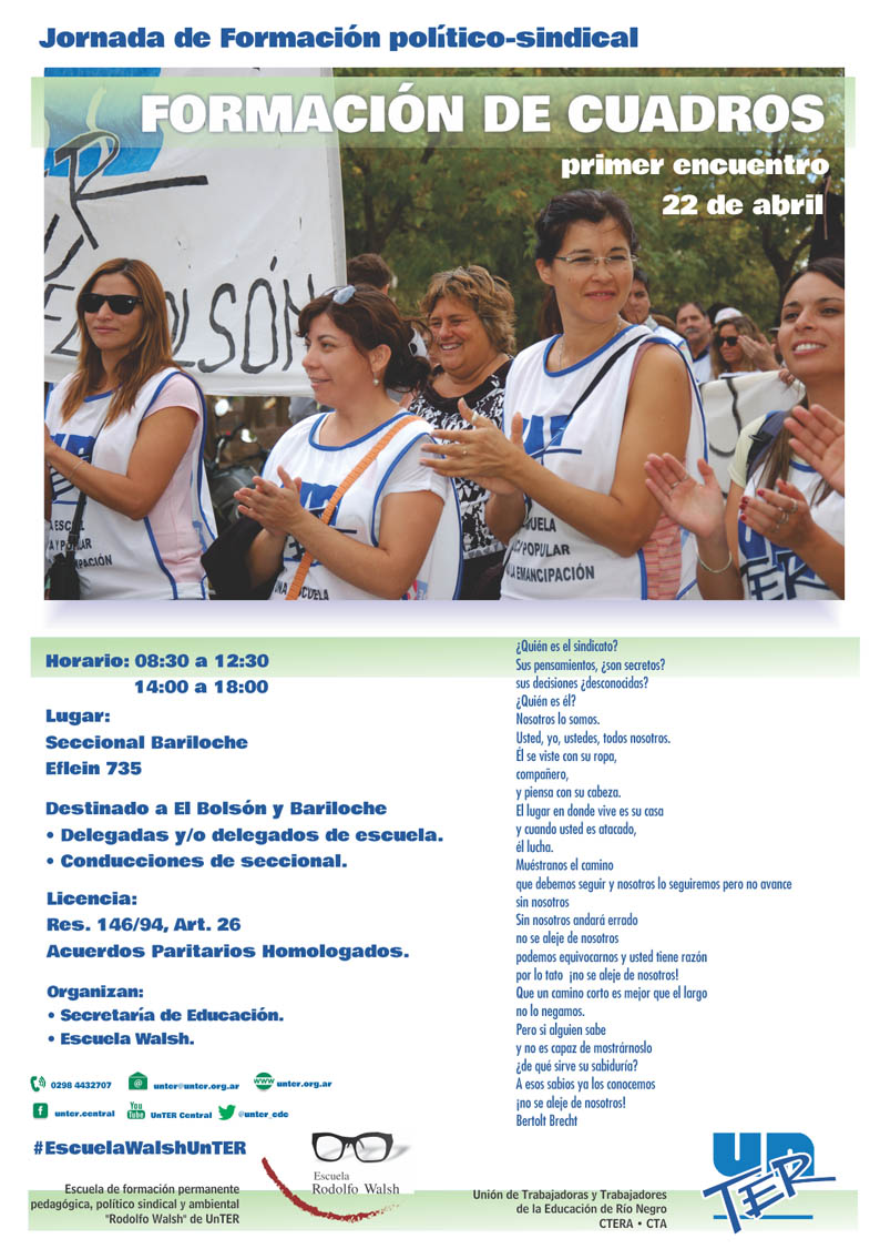 Los próximos se realizarán en Bariloche, 22/04/16 • Jacobacci, 21/04/16 • SAO, 15/04/16.