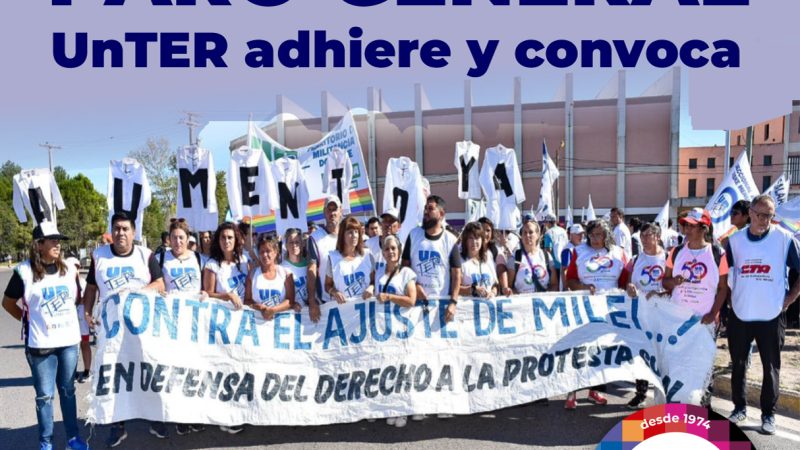 UnTER adhiere y convoca al paro nacional docente el 10 de abril, acción de continuidad del plan de lucha definido por el Congreso de CTERA en febrero de 2025, en defensa de la educación pública y lxs jubiladxs.
