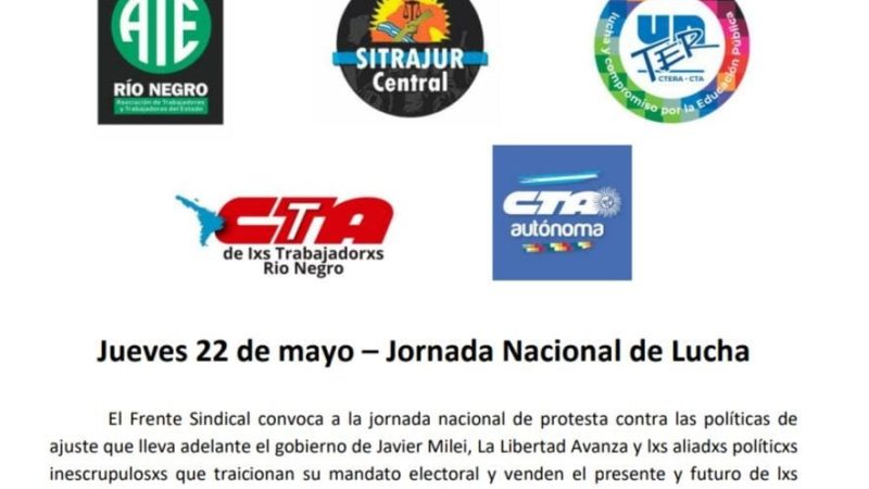 Convocatoria del Frente Sindical a la jornada de protesta del jueves 22 de mayo