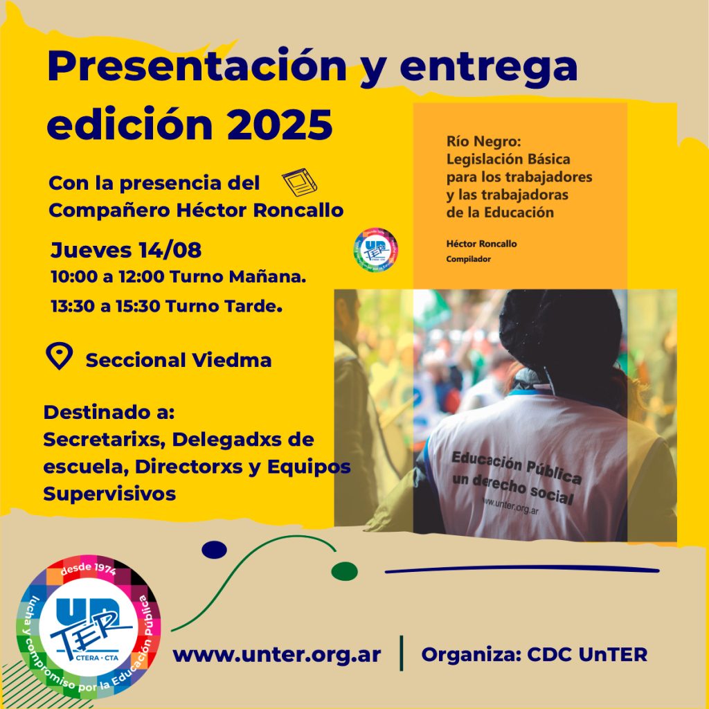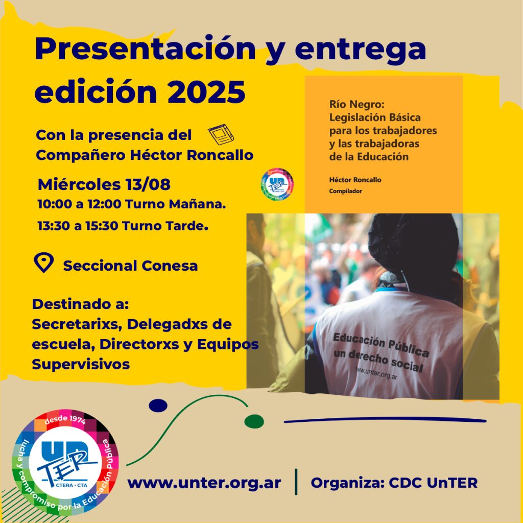Cada vez que se edita este libro se realiza una presentación y entrega en las dieciocho seccionales de UnTER, con una convocatoria abierta y en especial a secretarixs y delegadxs de escuela, directorxs y equipos supervisivos. El objetivo es que cada institución educativa cuente con esta herramienta de consulta permanente de lxs trabajadorxs de la educación.