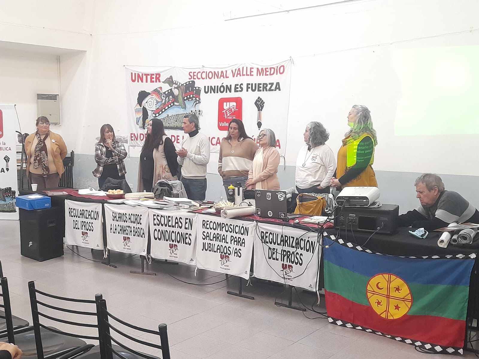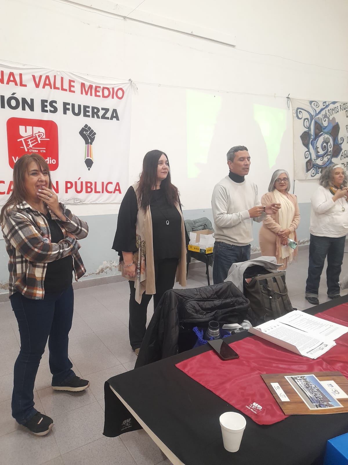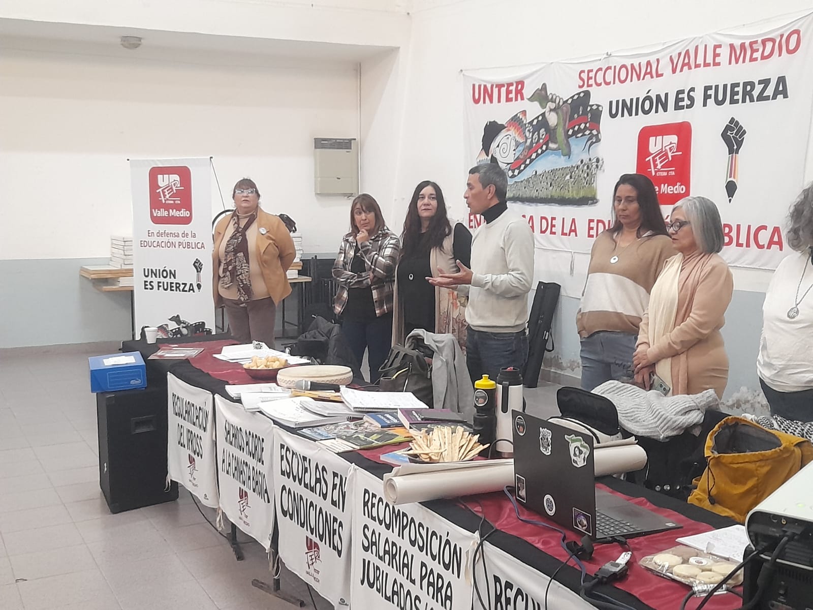 Participan también la compañera Karina Castañeda, Secretaria General de la seccional anfitriona; junto a Alfonsina Ferrarotti, a cargo de la Secretaría General de la Seccional Río Colorado; María Isabel Bravo, Vicedirectora de la Escuela Rodolfo Walsh; Mariela Romero Pouler, Delegada de Salud en la Escuela zona Valle Medio y Río Colorado, e integrantes de las conducciones locales participantes.