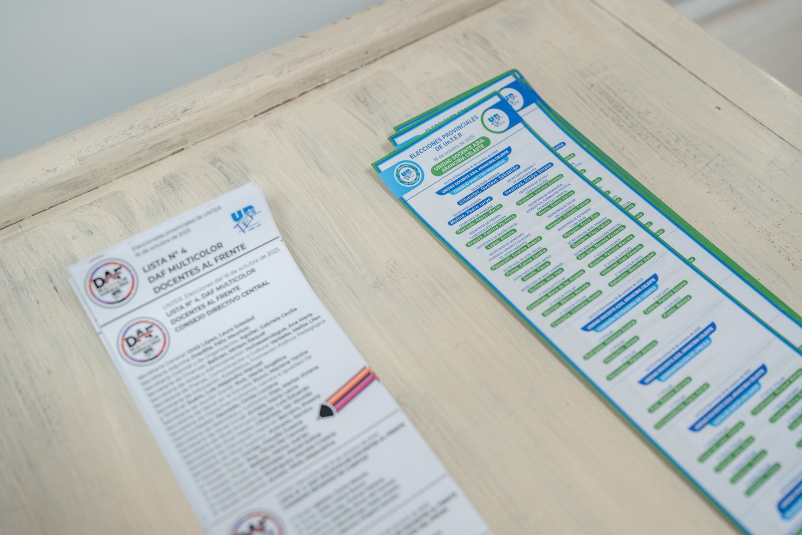 - Bariloche: “Lista N° 4 – La Fucsia en el DAF – Docentes al Frente”, “Lista N° 1420 – La Juana Manso” y “Unidad Docente Azul Arancibia Celeste”.
