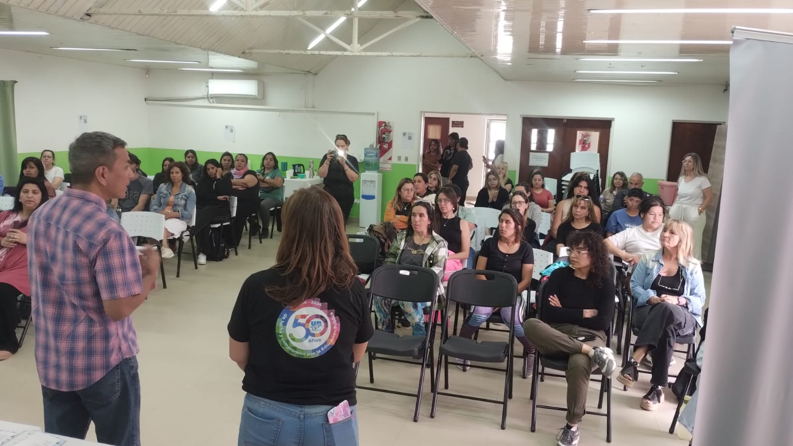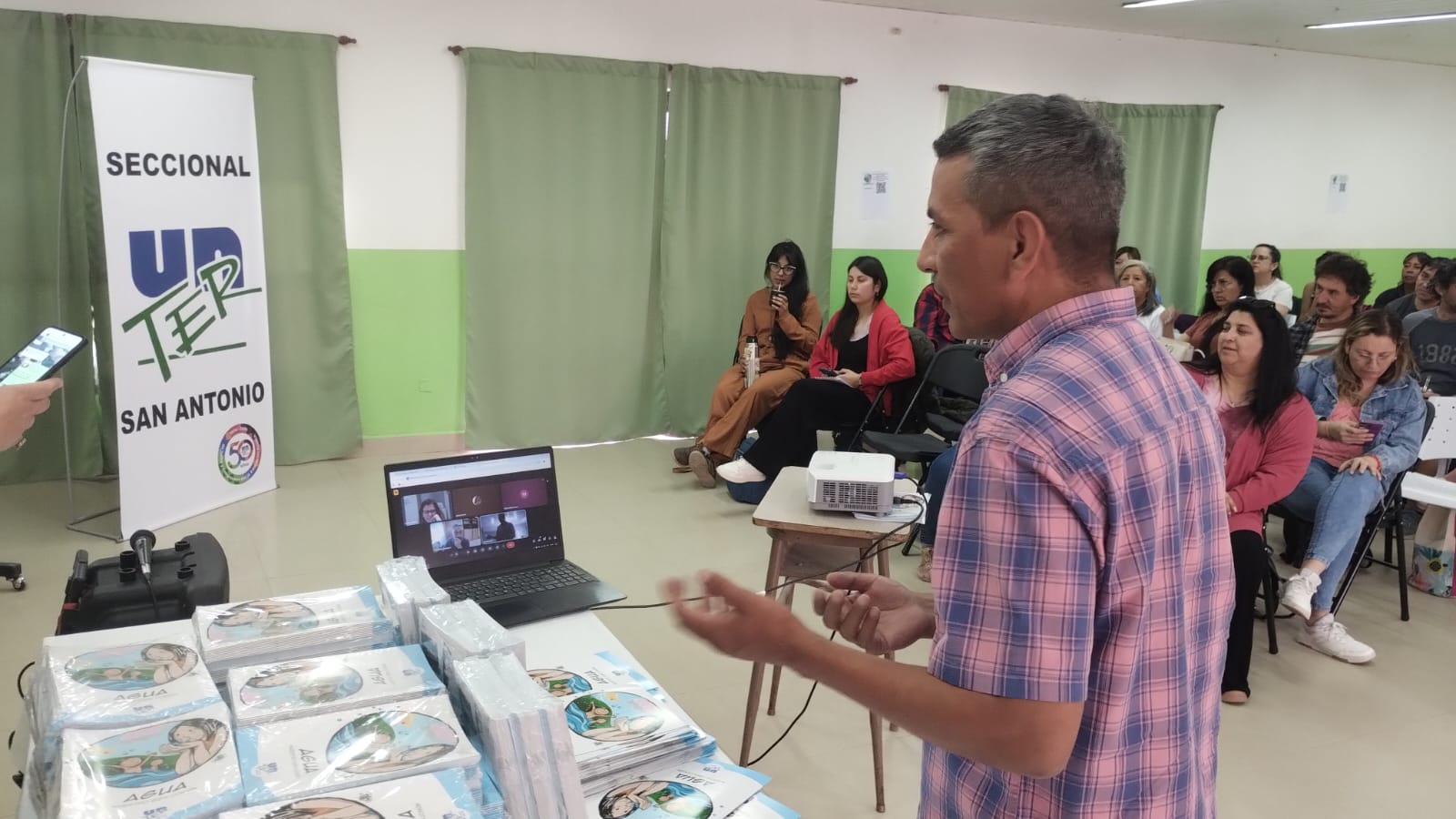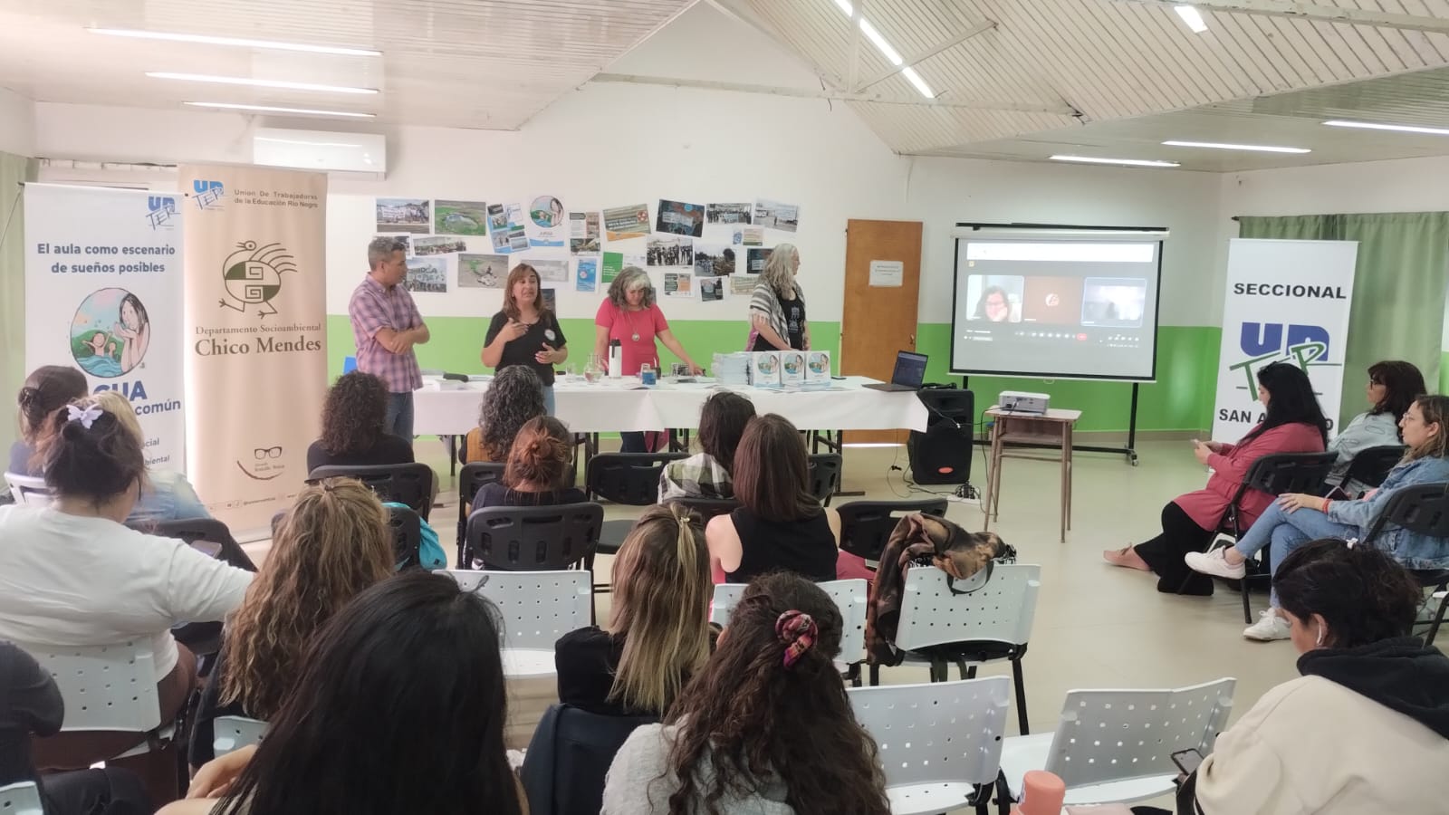 La actividad, que se realiza en el SUM de la Seccional SAO, cuenta con la asistencia de 70 compañerxs que integran la red provincial en las distintas seccionales, a partir de las jornadas de formación que pusieron en agenda la temática socioambiental en las escuelas y de la que surgió el grupo de referentes educativxs ambientales que sostuvieron un trabajo articulado.