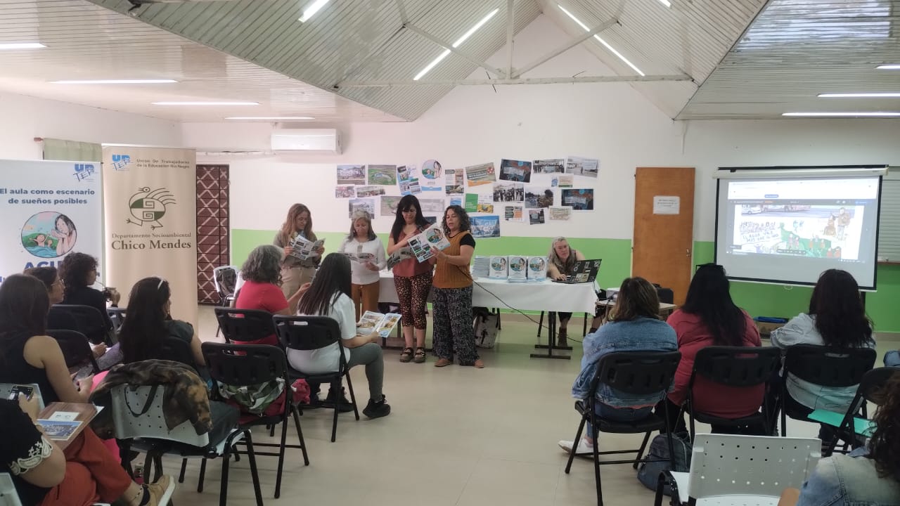 De manera colaborativa, la Red se consolidó a través de nuevos encuentros, intercambios y ateneos de formación específica. En este proceso surgió la creación de un recurso pedagógico propio, con identidad local: la historieta “Agua: nuestro bien común”, un material situado que refleja las realidades y luchas de los territorios. Fruto del trabajo colectivo, recupera las voces del territorio, narra la vida y los conflictos desde una mirada propia y respeta los valores de la diversidad y la interculturalidad. Fue diseñada junto a Editorial Aguará Colectivo Editorial como herramienta pedagógica con identidad rionegrina.