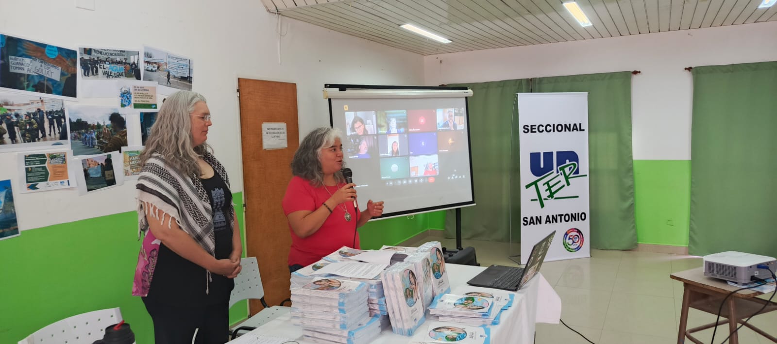 Participan por el CDC lxs compañerxs Gustavo Cifuentes, Claudia Asencio y Viviana Orellano, Secretario Adjunto, de Educación y de Actas y Administración, respectivamente, y acompañan las Secretarias Generales Carina Ponce (SAO), Claudia Gorri (Catriel), Paola Loncón (Jacobacci) y Silene Alanis (Conesa).
