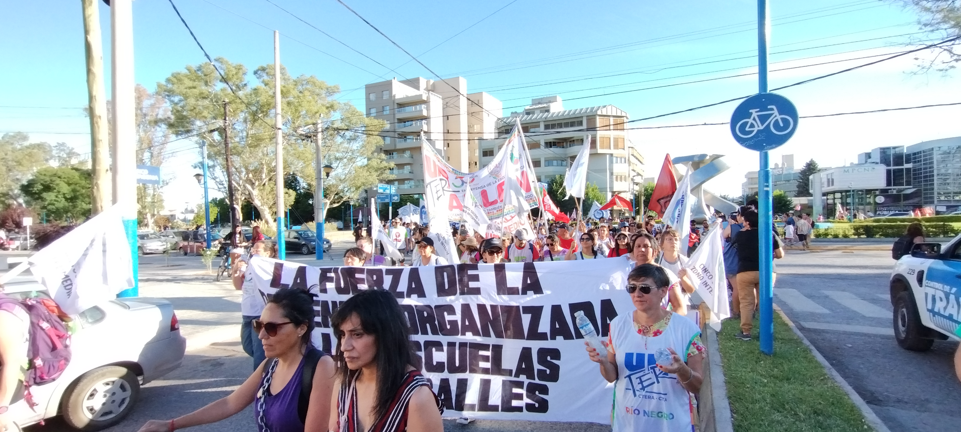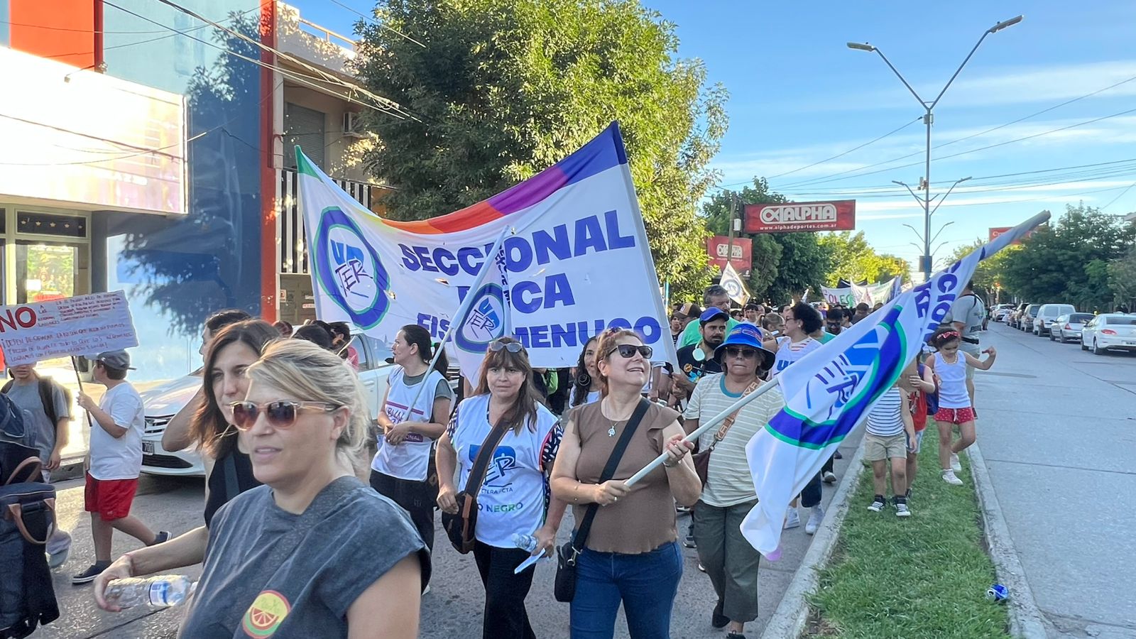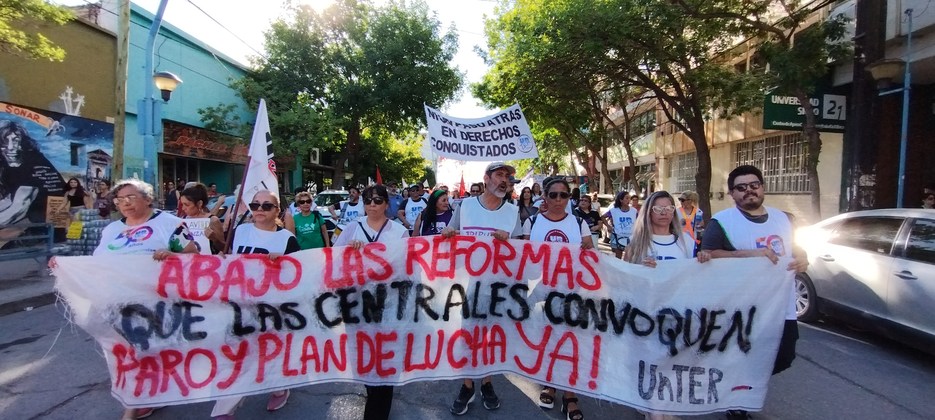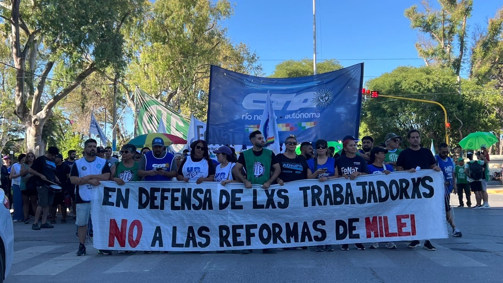 Las y los docentes de Rio Negro participaron de acciones en toda la provincia en el marco del Paro contra la Reforma Laboral.