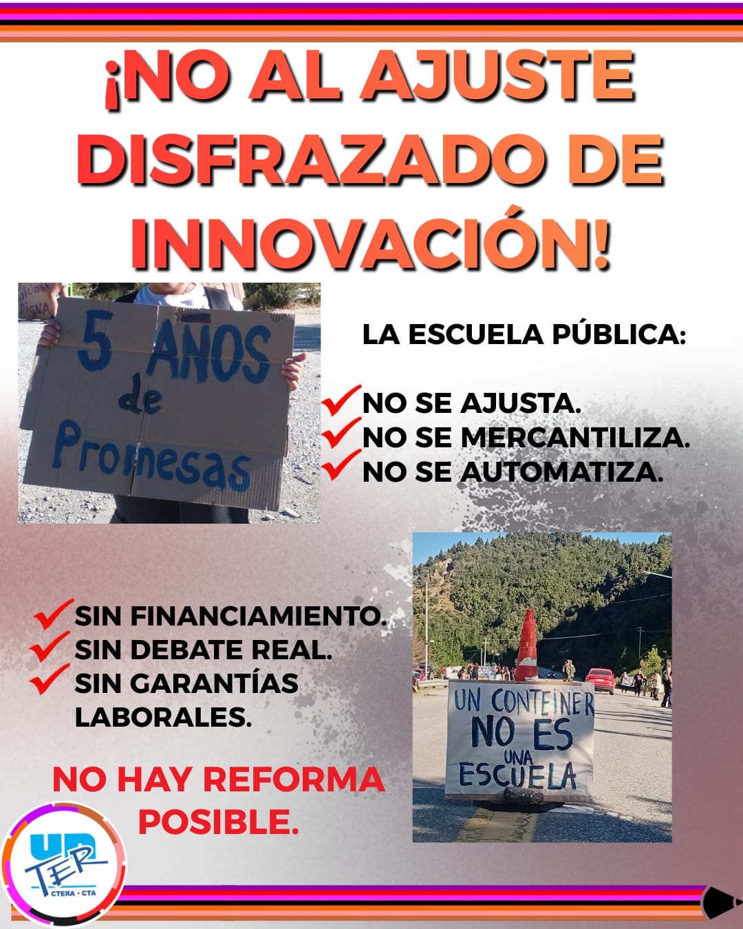 Nos oponemos a que el cambio sea utilizado como excusa para recortar derechos, vaciar contenidos y correr el foco de la responsabilidad que le corresponde al Gobierno y al Estado.