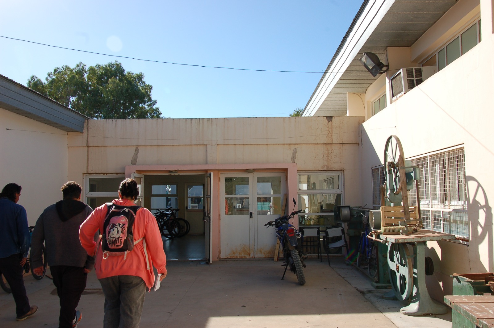 El edificio central presenta grietas, humedad y puertas atadas con alambre. Además, en el sector de aulas de taller, varios espacios han sido refuncionalizados, conviviendo dos agrupamientos con interferencia del sonido ambiente, ya sean maquinarias, herramientas o el propio dictado de clases. Por otra parte, debido a la faltante de espacio físico en el edificio escolar, cuentan con un espacio destinado a aula a dos cuadras de la escuela. En dicho sector, funciona el taller de Construcciones. Un espacio precario, con techo de chapa con visibles marcas de óxido y goteras, sumando a todo esto, que cuentan con un lugar destinado a cocina que comparte espacio con el baño y un único sanitario para 24 estudiantes de diferente género y sus docentes.