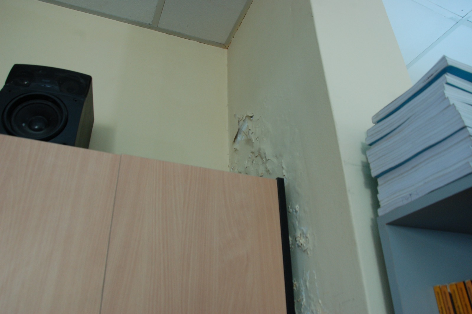 El edificio presenta filtraciones en los techos, humedad en sectores con electricidad, puertas y ventanas cuyos marcos se están desprendiendo de las paredes. Además, y el problema más grave, la permanente presencia de palomas y murciélagos que ingresan y anidan entre los techos, generando un ambiente insalubre y peligroso para la comunidad educativa. Se han aplicado diferentes alternativas que sólo resultan en paliativos, dado que la cuestión de fondo no se resuelve.