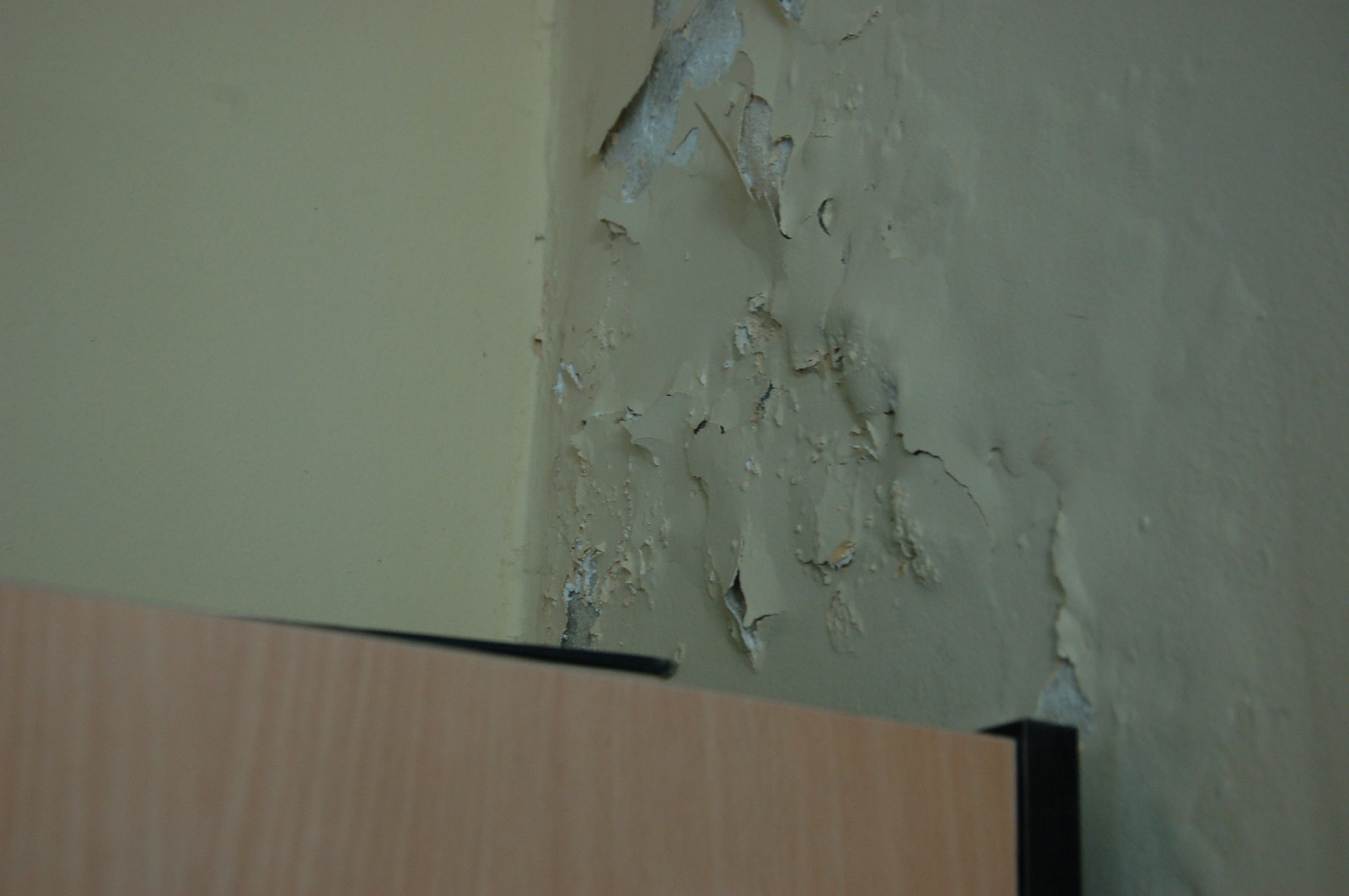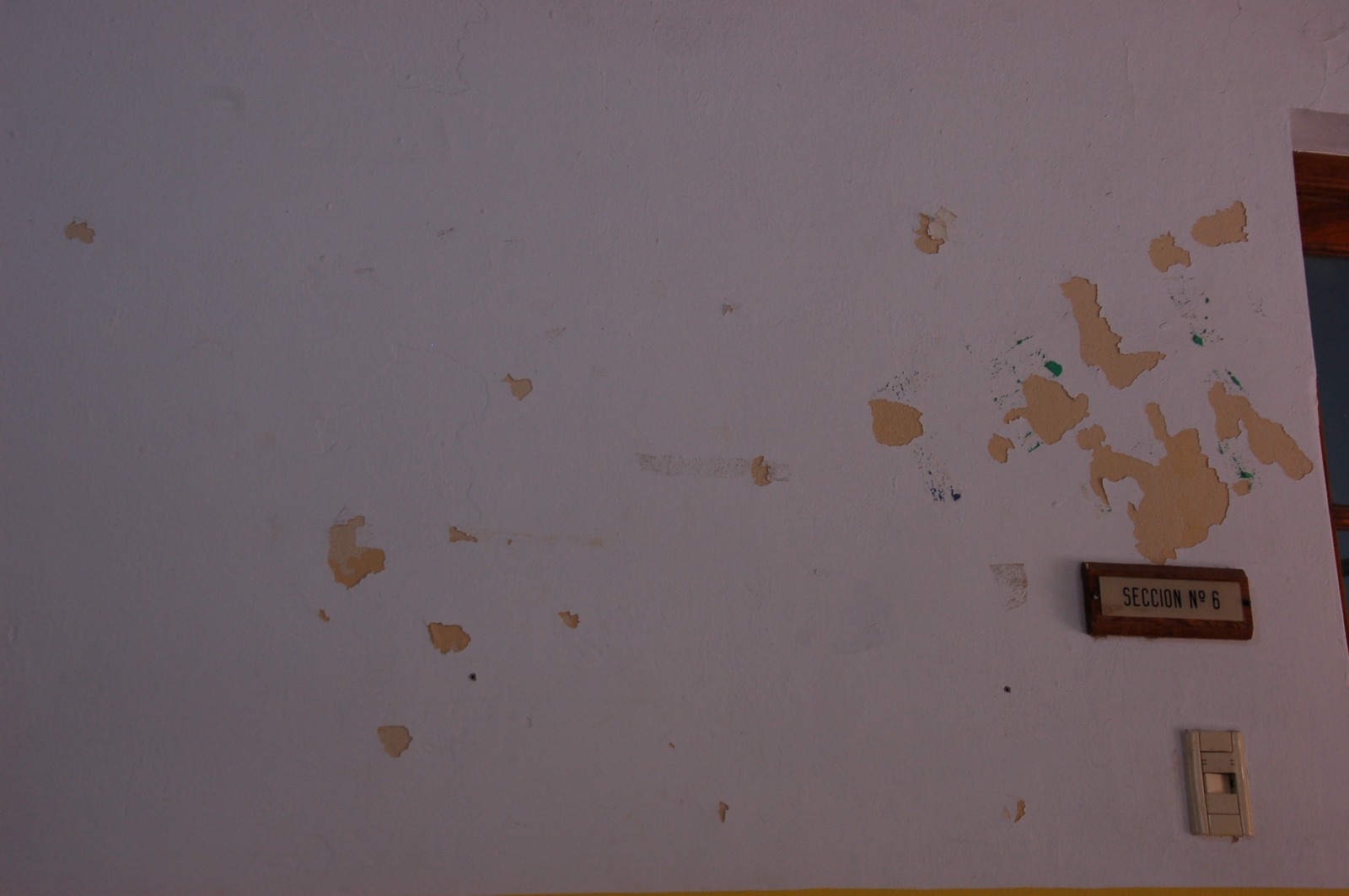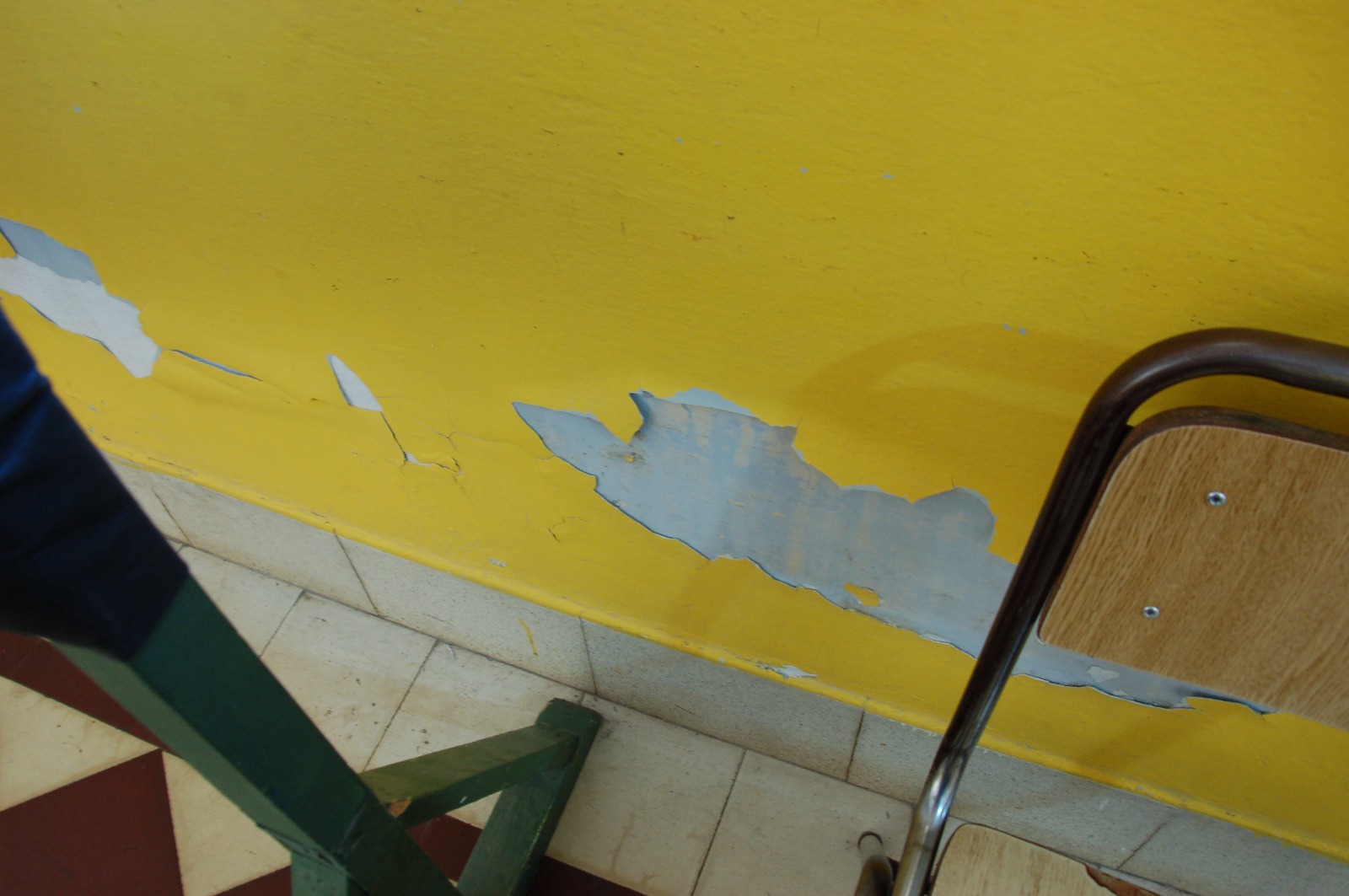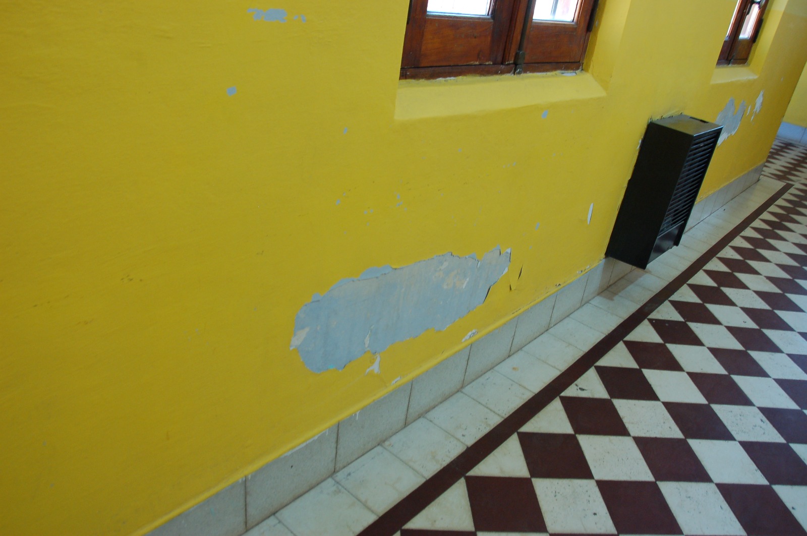 El Ministerio de Educación de Río Negro inició en enero una refacción sanitaria y trabajos de pintura, pero el edificio continúa deteriorándose: paredes descascaradas, filtraciones y humedad visibles.