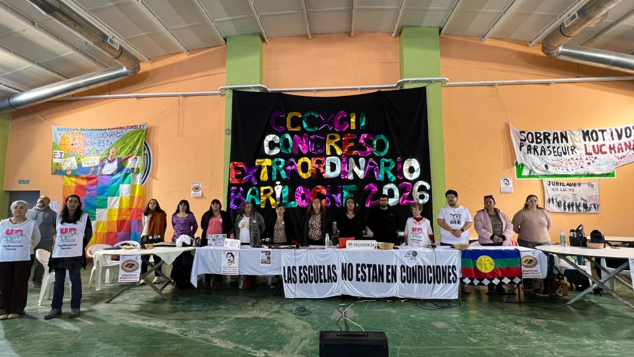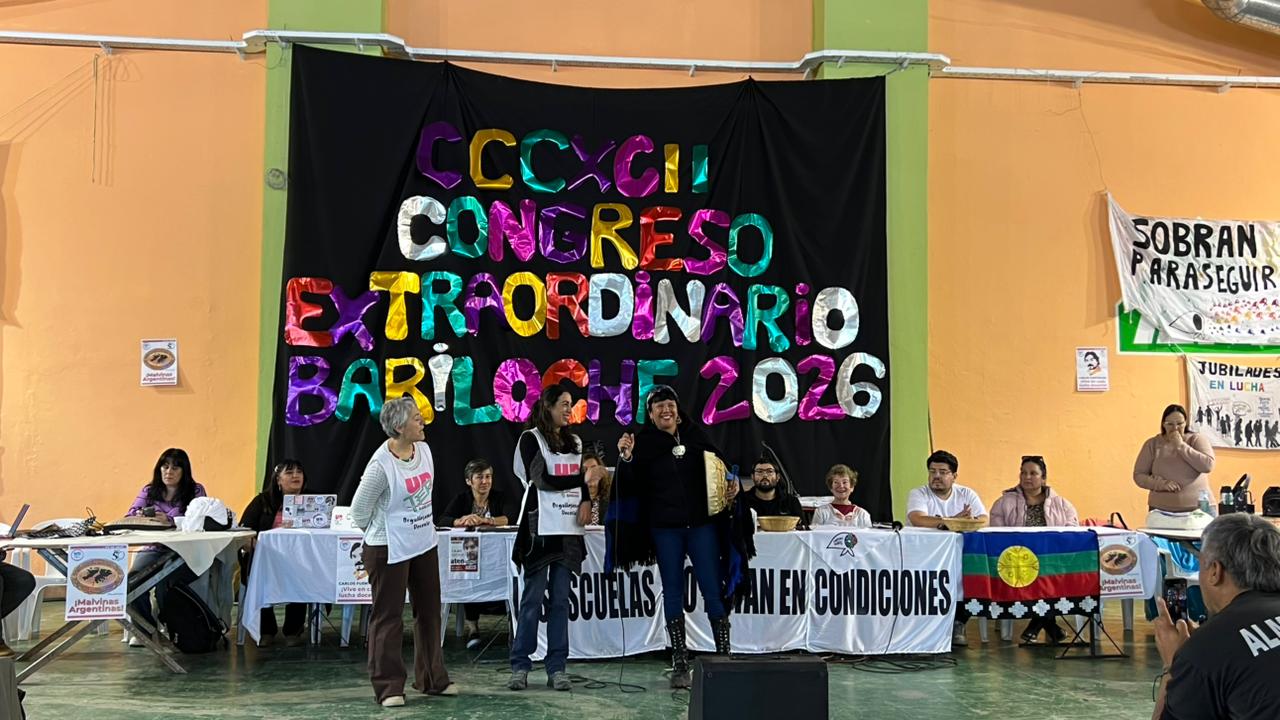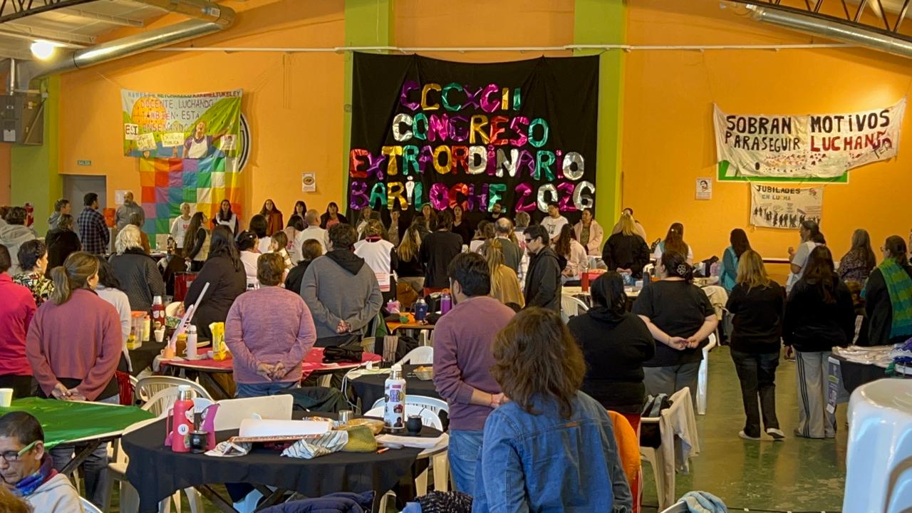 Con la presencia de todas las seccionales se desarrolla en Bariloche, el CCCXCII Congreso Extraordinario, convocado para debatir y definir colectivamente nuestra posición en el encuentro paritario del jueves 9.